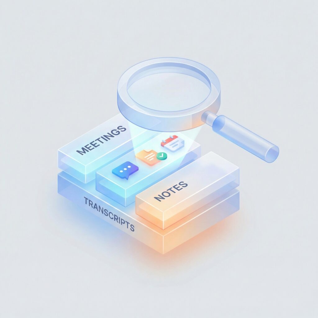 Full-text search across all your meetings. Find that decision, quote, or action item in seconds.