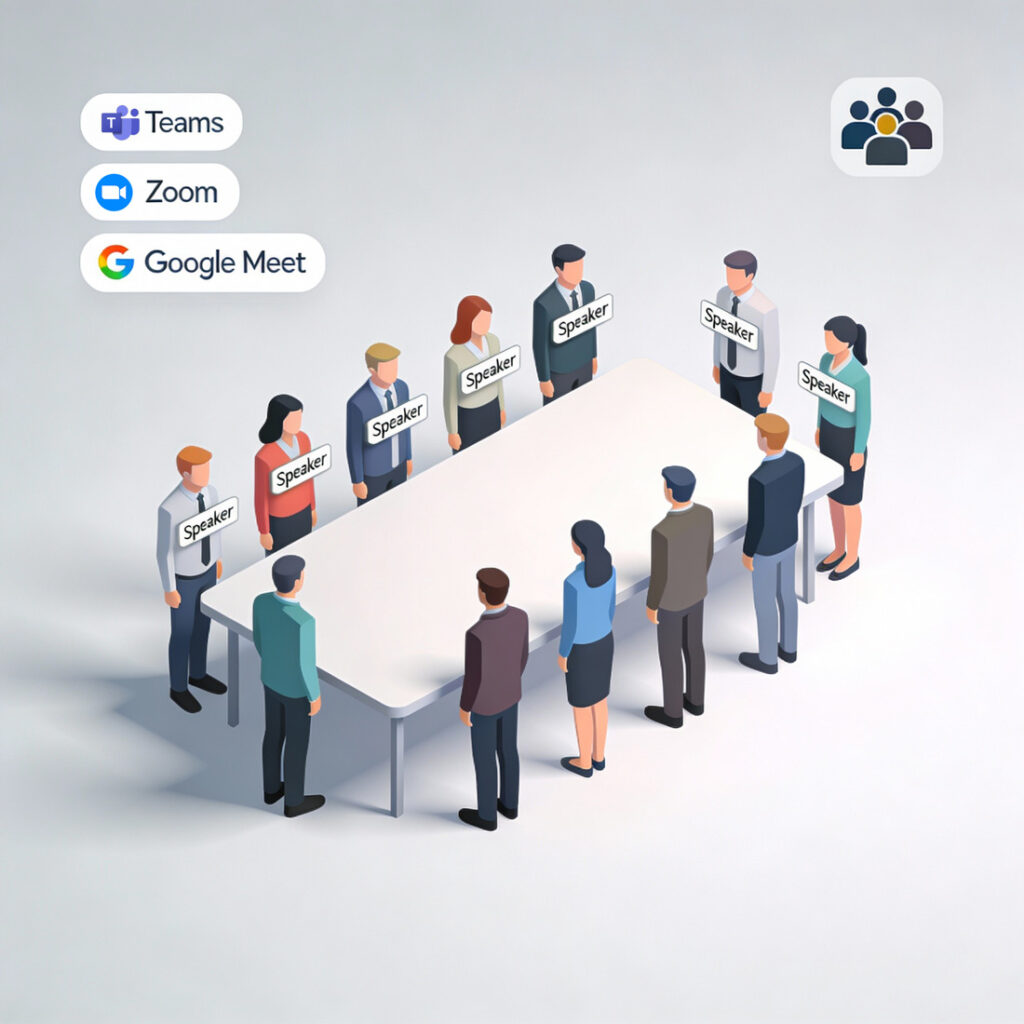 Works with Teams, Zoom, Google Meet, or in-person – participants